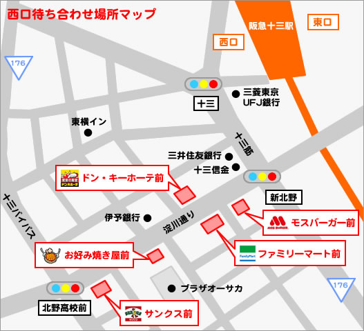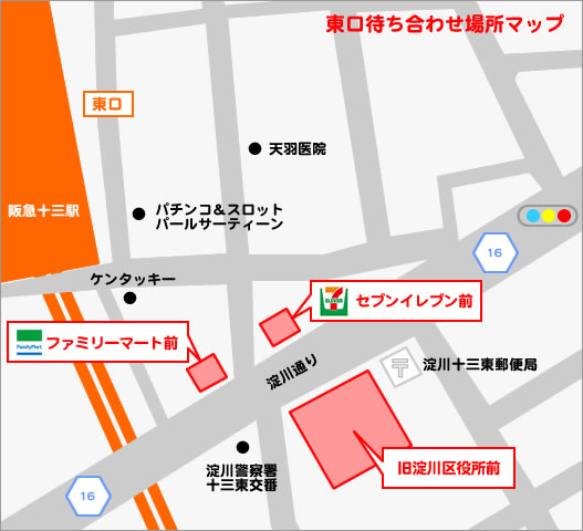 ファミリーマート前 セブンイレブン前 旧淀川区役所前 ※東口はホテル代が別途となります。 上記場所になります。 待ち合わせ場所がわかりにくい場合、お顔をさす場合等、お困りの事がございましたらお電話で誘導させて頂きますので、 お気軽にお電話にてお問合せ下さいませ。